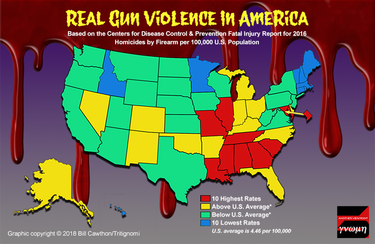 This time, we look at what the real numbers tell us about gun violence in those states. All these figures are based on data from the Centers for Disease Control & Prevention’s Fatal Injury Report for 2016.