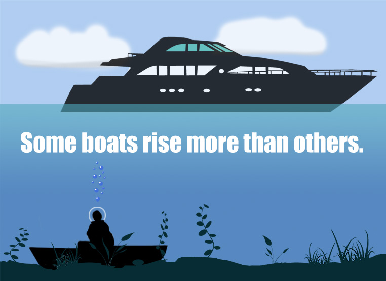 It appears that while the boats of the wealthiest are rising as though they could defy gravity, the rest of the fleet is taking on water.